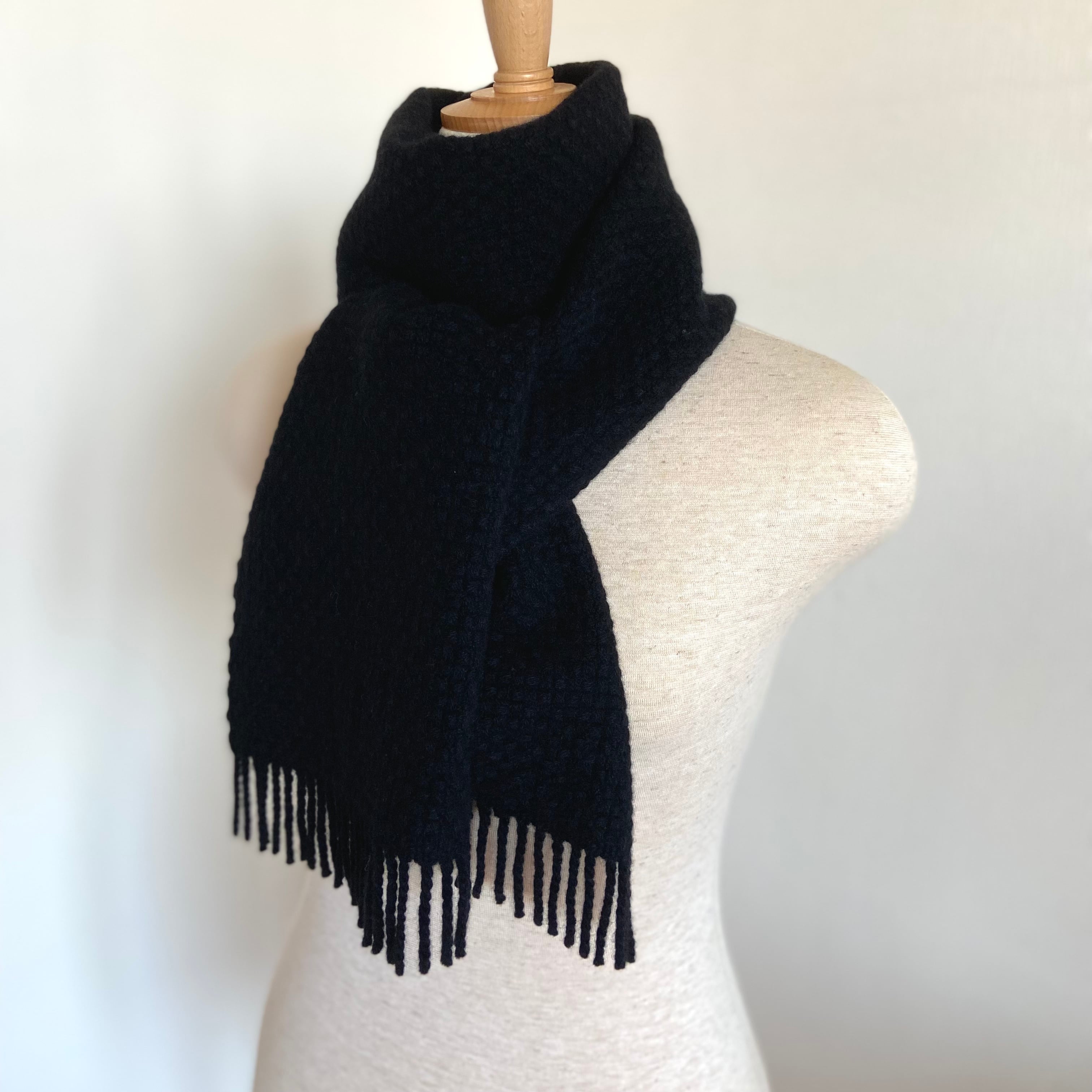 ポコポコした織布の手ざわりが気持ちいい定番サイズのマフラー。シンプルでどんなコーデにもあわせやすい一枚です。